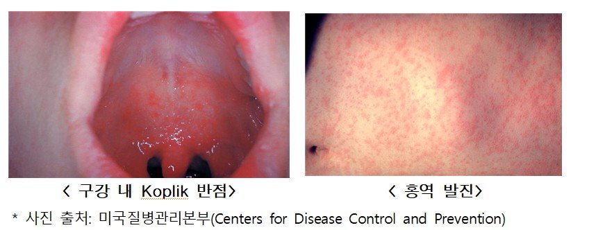홍역은 기침, 재채기를 통해 공기로 전파되는 전염성이 매우 강한 호흡기 감염병이다. 증상으로는 발열·발진·구강 속 회백색 반점 등이 나타나며, 홍역에 대한 면역이 불충분한 사람이 환자와 접촉하면 90% 이상 감염될 수 있다.
