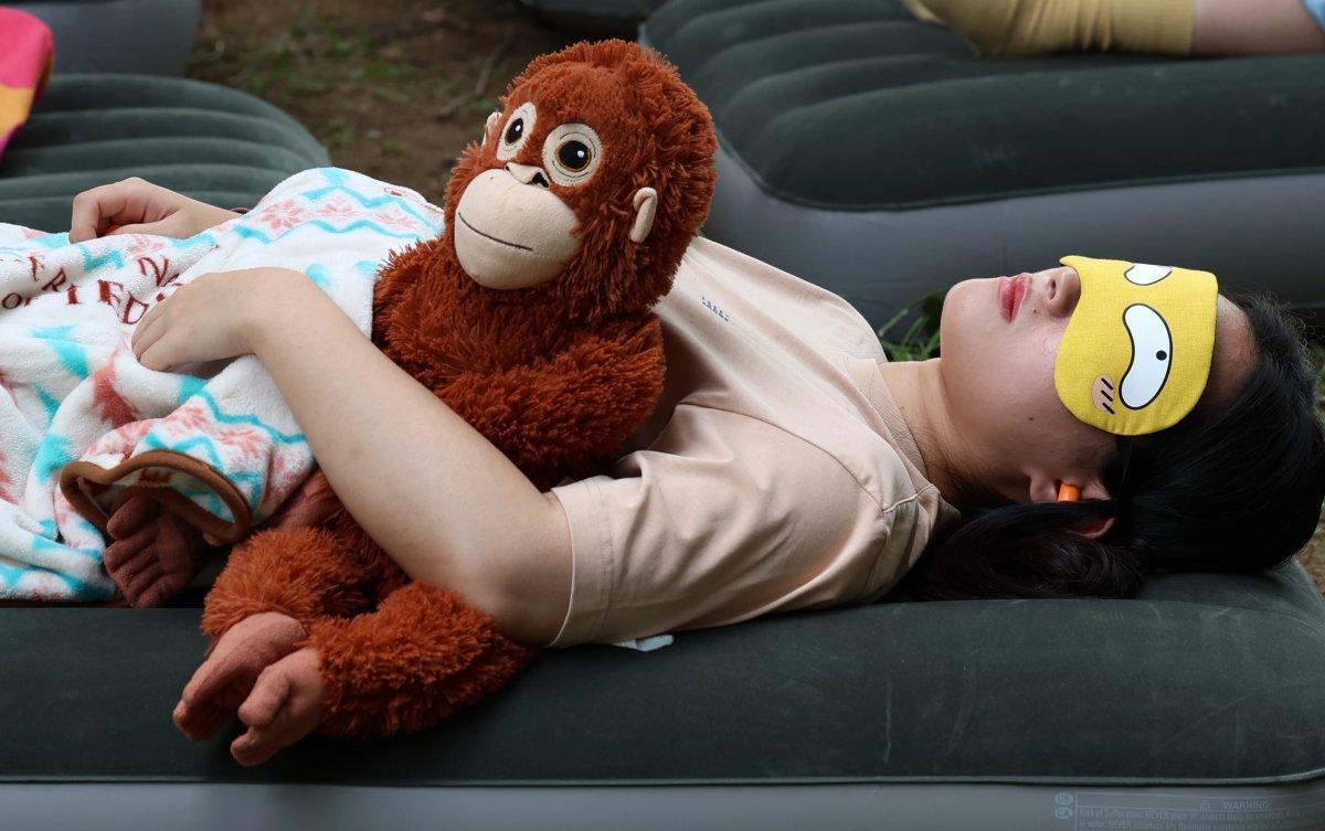 지난해 9월 8일 오후 서울 송파구 올림픽공원 피크닉장에서 유한킴벌리가 주최한 2024 우리강산 푸르게 푸르게 숲속 꿀잠대회에서 참가자들이 잠을 청하고 있다. 2024.09.08 서울=뉴시스최근 정치적 혼란과 경제적 불확실성으로 잠 못 이루는 사람들이 늘고 있다. 장 건강에 좋은 유익균인 프로바이오틱스를 섭취하는 등 장 건강을 잘 관리하면 숙면에 도움이 된다.