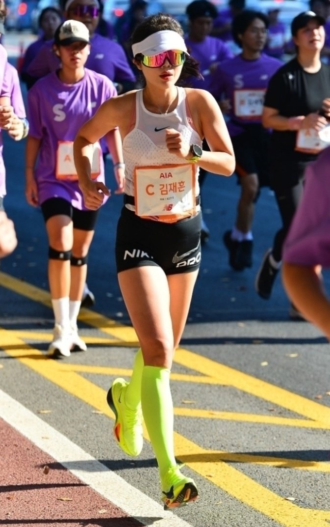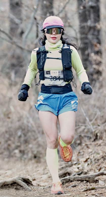 김재흔 씨가 한 마라톤 대회에서 질주하고 있다. 김재흔 씨 제공.지난해 5월 인천 계양산에서 열린 OSK(아웃도어스포츠코리아) 주최 여성 트레일러닝대회 10km를 달리면서 산악 마라톤에도 빠졌다. 지난해 11월 오들로 코리아가 주최한 북한산 트레일레이스 17km도 완주했다. 이 대회 17km 부문에서 2시간 47분을 기록해 여자 5위를 차지했다.