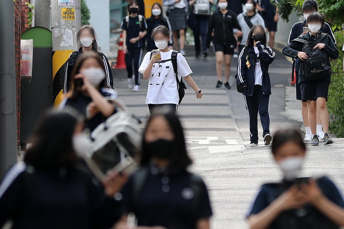 25일 오후 서울 시내 한 중학교 앞에서 학생들이 스마트폰을 보면서 하교하고 있다. 2022.05.25. [서울=뉴시스]질병관리청은 27일 ‘청소년 신체활동 추이와 관련 요인’을 주제로 ‘2025년 국민건강 통계플러스’ 보고서를 발표했다. 최근 10년간의 청소년 건강행태조사 결과를 청소년 신체활동 추이와 이에 미치는 요소 등을 분석한 것이다.
