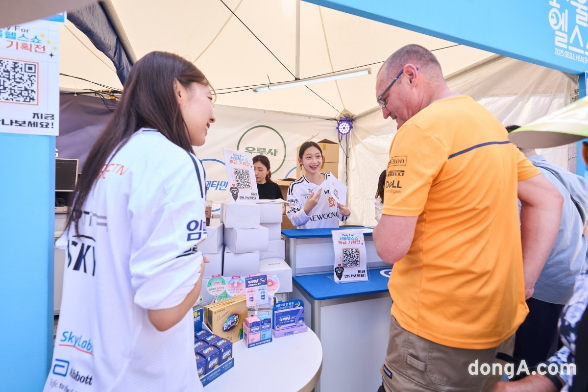 대웅제약 부스를 방문한 외국인 방문객이 대웅제약 일반의약품에 대한 설명을 듣고 있다.조병하 대웅제약 디지털 헬스케어 사업부장은 “시민들이 실명질환 위험성을 직접 체험해 건강의 소중함을 돌아보는 계기가 되길 바란다”며 “앞으로도 대웅제약은 디지털 기술을 활용한 예방 및 조기 진단 중심 헬스케어 솔루션을 통해 국민 건강에 기여해 나갈 것”이라고 말했다.