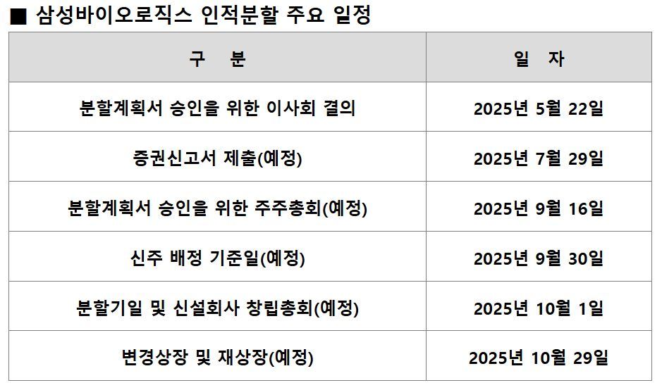 신주 배정 기준일 전날인 오는 9월 29일부터 변경상장 및 재상장일 전날인 10월 28일까지 삼성바이오로직스 주식거래는 일시 정지된다.