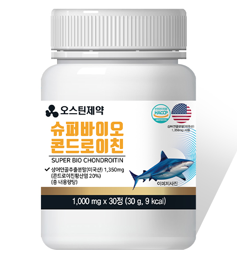 오스틴제약 슈퍼바이오 콘드로이친은 100% 미국산 상어연골추출분말과 연골 섬유의 주성분인 슈퍼바이오 콘드로이친을 90% 함유하고 있다. 관절과 연골을 케어해 주는 상어연골 속 핵심 성분인 콘드로이친은 연령이 높아질수록 체내 합성률이 현저히 저하돼 외부에서 보충 섭취가 필수라는 게 전문가들의 견해다.