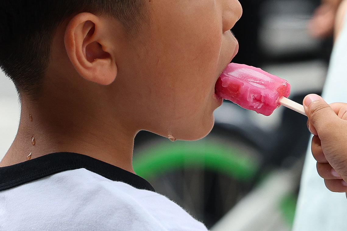 서울지역에 이틀째 폭염주의보가 지속중인 1일 서울 종로구 광화문광장 인근에서 어린이가 땀을 흘리며 아이스크림을 먹고 있다. 2025.07.01. [서울=뉴시스] 여름철에는 기온과 습도가 높아 세균 번식이 활발해지면서 구강 내 세균 증식으로 충치와 잇몸 질환의 위험도 높아진다.
