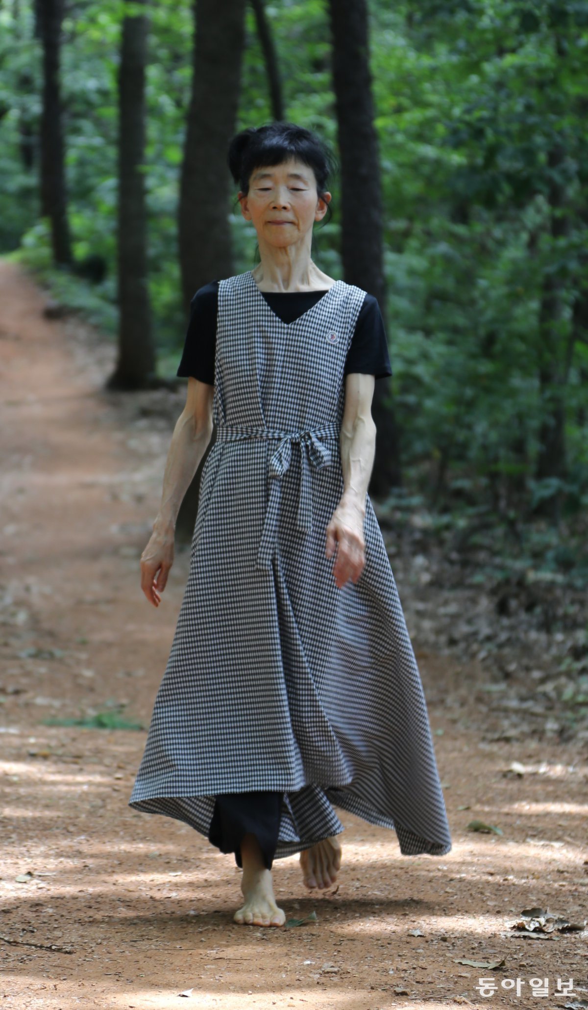 원종연 씨가 경기 파주 아동동 학령산에서 즐거운 표정으로 맨발 걷기를 하고 있다. 2살 때 소아마비를 앓은 그는 7년여 전부터 맨발 걷기를 해 60년 넘게 고생한 지체 장애에서 벗어났다. 파주=양종구 기자 yjongk@donga.com“방송을 보고 바로 ‘이것이다’고 생각했죠. 맨발로 걸어서 다양한 병이 치유된 것을 보고 저도 희망을 봤습니다. 진짜 발을 펴기 위해 온갖 수단을 다했지만 이루지 못했어요. 체형 교정술로 조금 나아졌고, 신발에 교정 깔창을 깔아 그나마 덜 절뚝거렸었죠. 방송을 보고 이웃집 언니랑 바로 산정호수(경기 포천)로 가서 맨발로 걸었어요. 엄청 아팠죠. 그래도 참고 걸었습니다. 깔창은 다 버렸습니다. 깔창은 그때뿐이고 빼면 다시 절뚝거리니까요.”