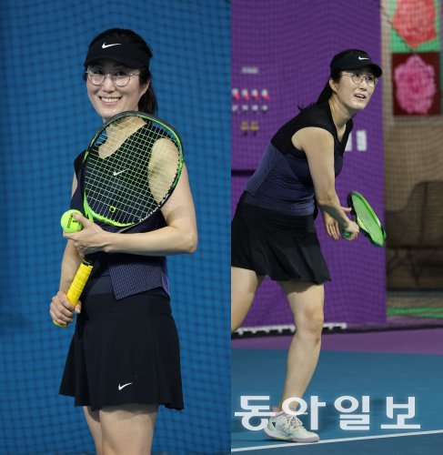 박진경 한국외국어대 국제지역대학원 교수가 서울 구로구 고척동 귀뚜라미클린테니스코트에서 라켓과 공을 들고 밝게 웃고 있다. 신원건 기자 laputa@donga.com양종구 기자 yjongk@donga.com