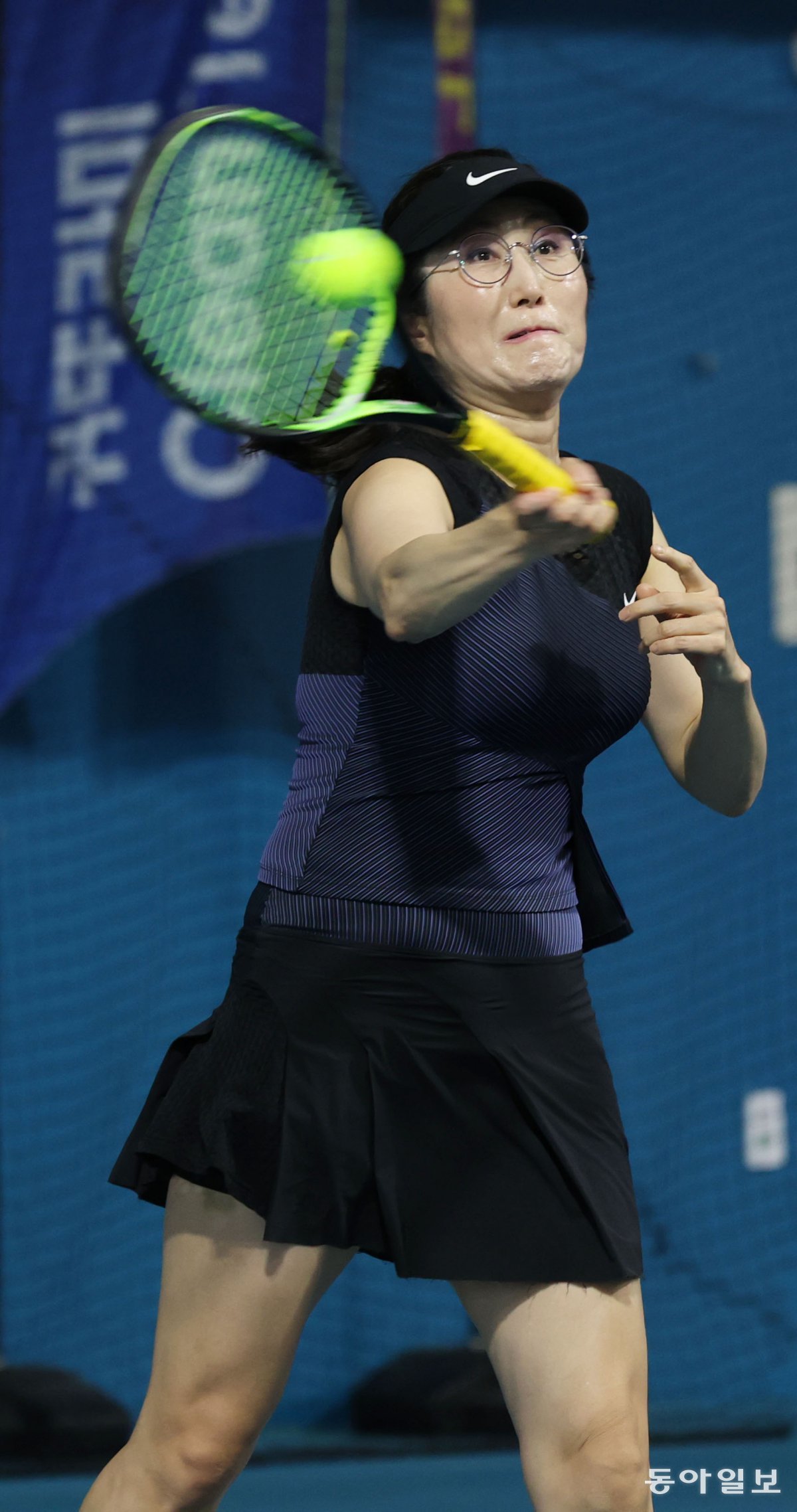 박진경 교수가 서울 구로구 고척동 귀뚜라미클린테니스코트에서 포핸드 스트로크를 날리고 있다. 신원건 기자 laputa@donga.com“막상 제가 테니스 선수를 한다고 하니 부모님의 반대가 심했어요. 제가 공부도 잘했거든요. 제가 반 3등으로 들어갔는데 당시 담임 선생님이 어머니를 불러 ‘공부 잘하는 데 왜 운동을 시키냐?’고 했다고 해요. 그렇다 보니 부모님들은 반대할 수밖에 없었죠. 특히 저와 함께 테니스를 치던 아버지께서 더 심하게 반대했죠. 담임 선생님이 제게도 운동을 그만둘 것을 권했죠. 하지만 당시 제 귀엔 전혀 들어오지 않았죠. 테니스가 너무 좋고 재밌었거든요.”