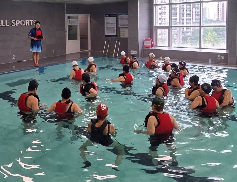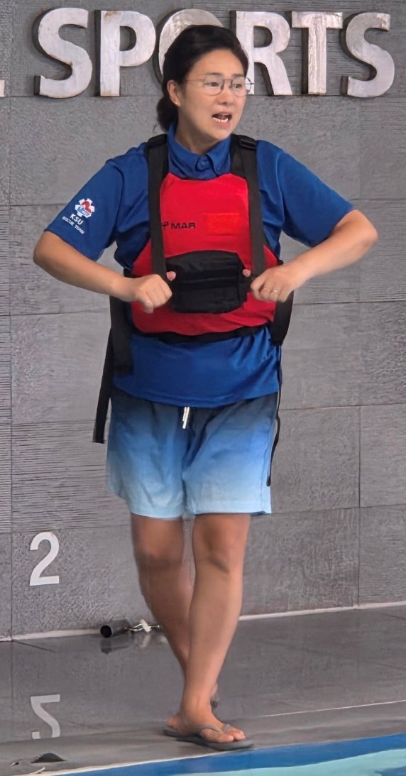 하셈희 대한안전연합 경기중앙본부 본부장이 수상 안전교육을 하고 있다. 대한안전연합 경기중앙본부 제공.하 본부장은 취미로 하던 수영을 평생 직업으로 삼았다.