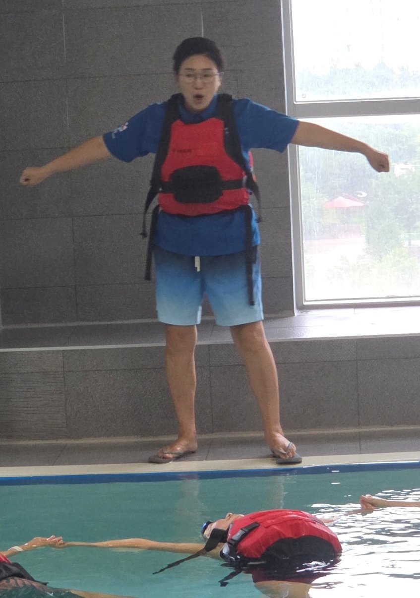 하셈희 대한안전연합 경기중앙본부 본부장이 수상 안전교육을 하고 있다. 대한안전연합 경기중앙본부 제공.양종구 기자 yjongk@donga.com
