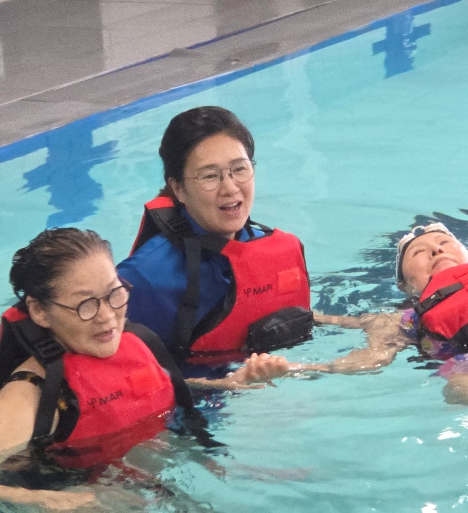 “수영은 대표적인 전신 유산소 운동으로, 관절에 무리를 주지 않으면서도 근력과 지구력, 심폐 기능을 동시에 강화할 수 있어요. 아주 효율적인 운동입니다. 물속에서 몸을 움직이다 보면 자세 교정, 유연성 향상, 스트레스 해소에도 도움이 됩니다.”