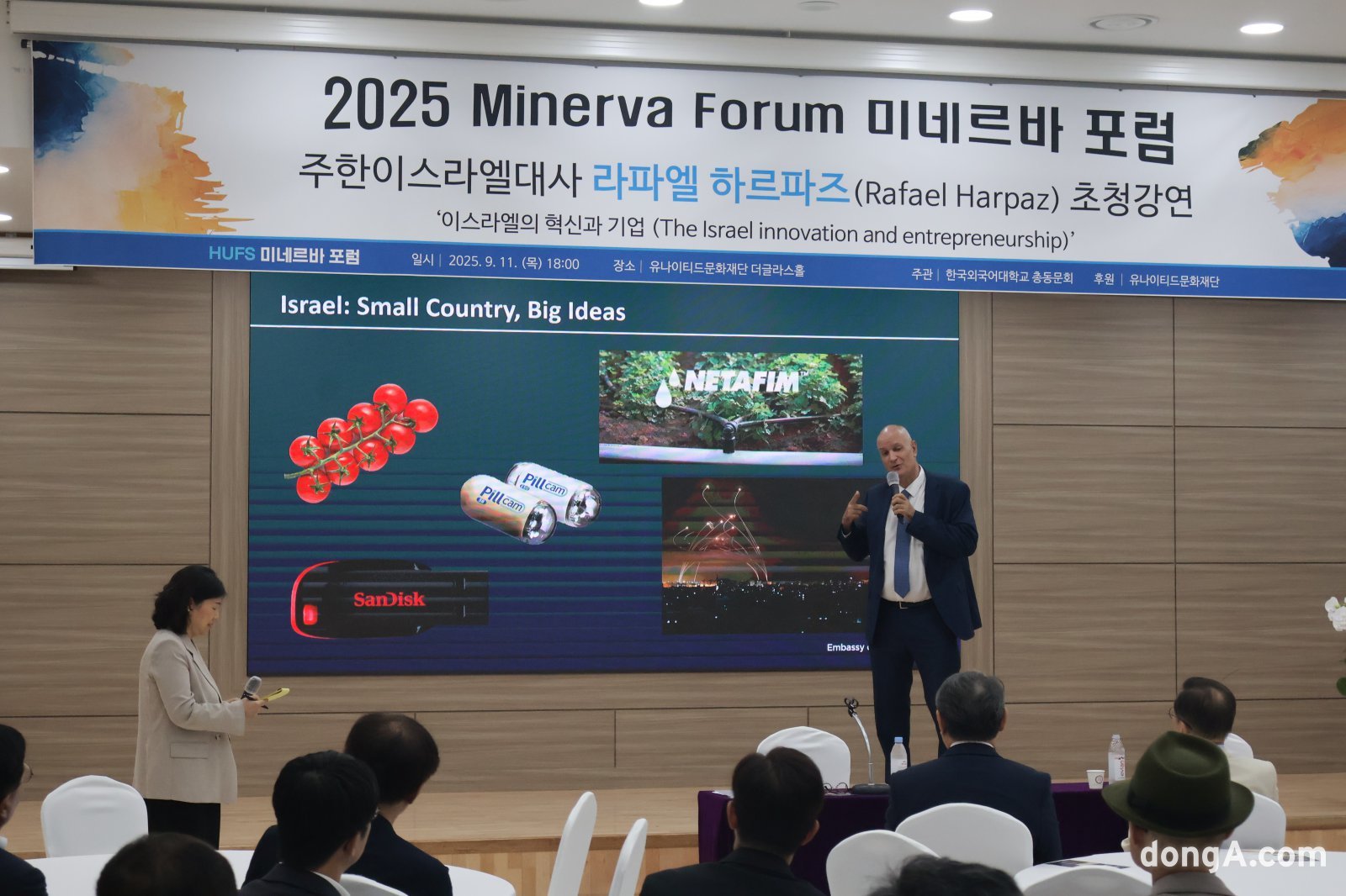 주한 이스라엘 대사 라파엘 하르파즈는 ‘이스라엘의 혁신과 기업’을 주제로 연설(주제에 대해 전문적으로 이야기하는 자리)을 맡았다. 그는 이스라엘이 어떻게 스타트업 중심의 혁신 국가로 성장했는지, 창업가들의 도전정신을 구체 사례와 함께 소개하며, 한국 기업과 사회에도 실용적인 참고 점을 제시했다.