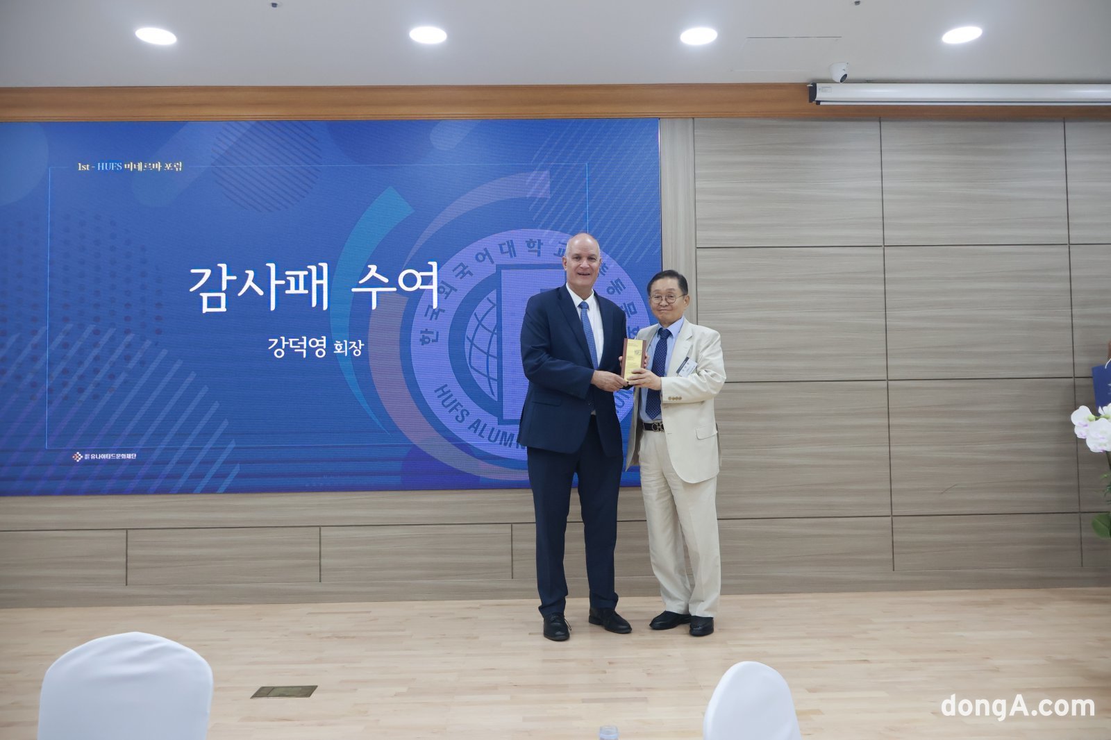 강연이 끝난 뒤 유나이티드문화재단 강덕영 이사장은 하르파즈 대사에게 감사패를 전달하며 “이번 포럼이 지식 제공을 넘어 새로운 관점과 협력의 계기가 되길 기대한다”고 전했다.