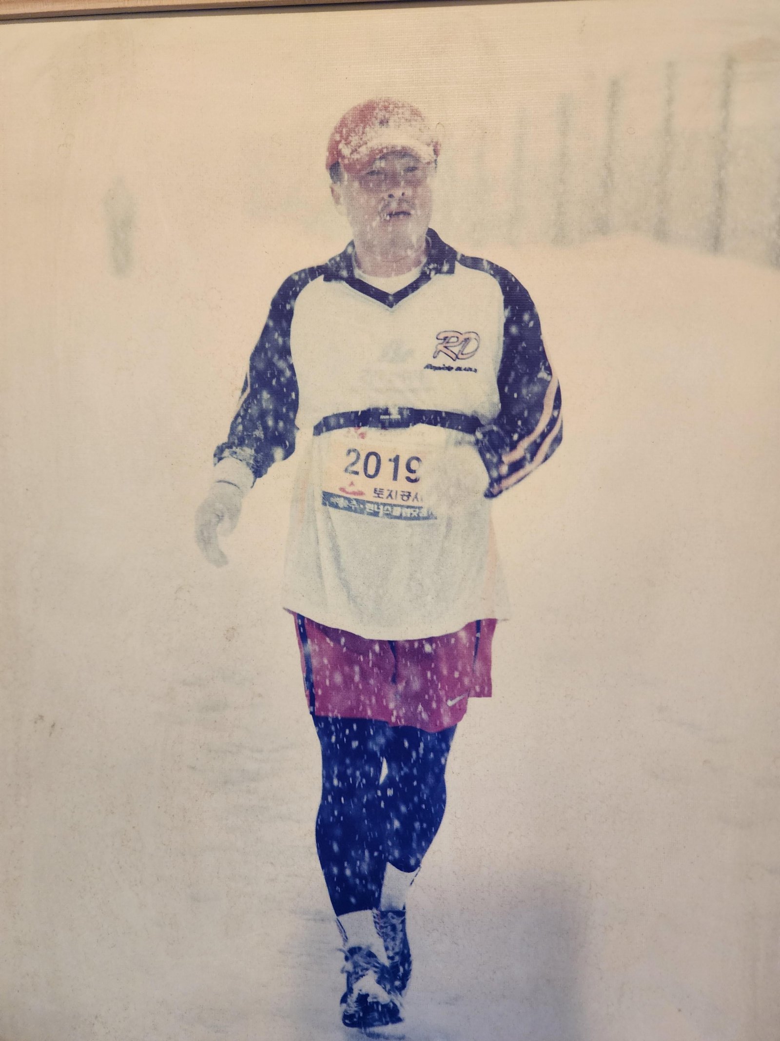 분당 탄천 일대에서 활동하는 ‘분당검푸마라톤’에 가입해 함께 달렸다. 서로 의지하고 응원하며 달리니 더 쉽게 뛸 수 있었다. 바로 마라톤에 적응했다. 그해 2월 북한 금강산에서 열린 ‘제1회 금강산 마라톤대회’에 출전해 27km를 완주했다. 그는 “아버지가 북한에서 내려오셔서 참가가 더 뜻깊었다. 그리고 난생 첫 마라톤에 도전해 함박눈 내리는 가운데 야외 온천장으로 골인할 때의 기쁨은 아직도 생생하다”고 했다. 2개월 뒤 42.195km 풀코스에 처음 도전해 4시간 30분에 완주했다.