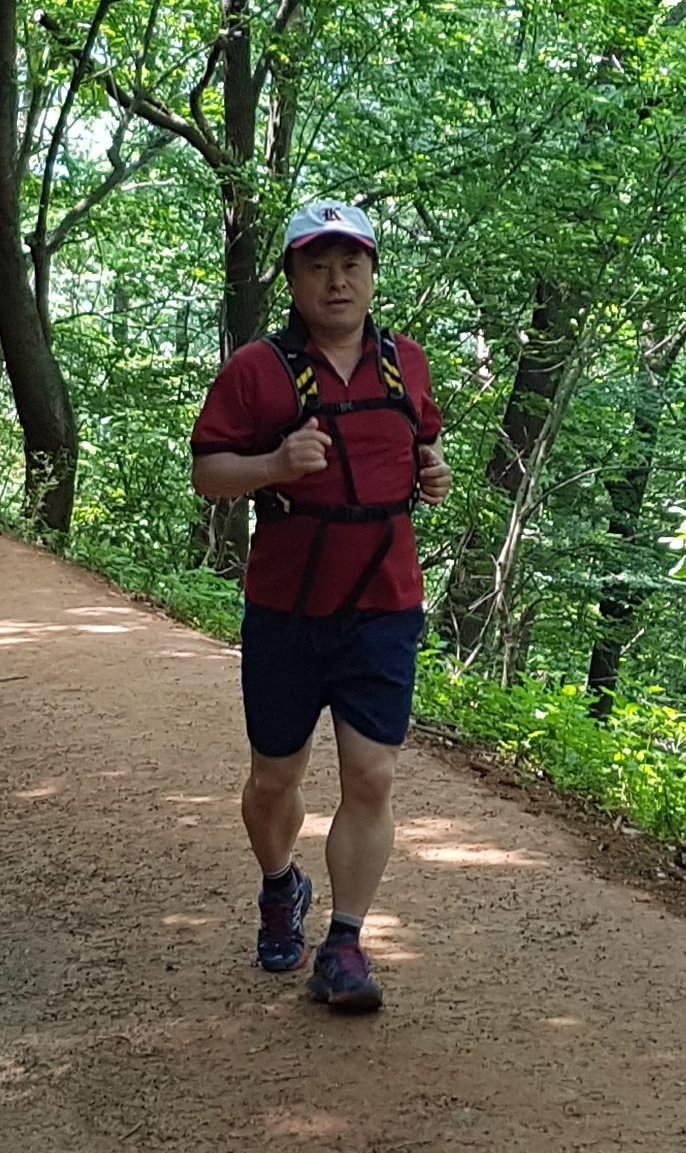 이명현 변호사가 산길을 달리고 있다. 그는 2017년부터 산을 달리는 트레일러닝대회에도 참가하고 있다. 이명현 변호사 제공.이 변호사는 대회 출전은 풀코스보다는 간간이 하프코스나 10km에 출전하고 있다. 최근 젊은이들이 마라톤대회에 많이 참가하는 바람에 참가 신청이 쉽지 않은 측면도 있지만 굳이 대회 풀코스에 참가하지 않고 혼자 달리는 것으로도 충분하기 때문이다. 그는 “젊은이들이 많이 달리는 현상은 참 좋다”고 했다.