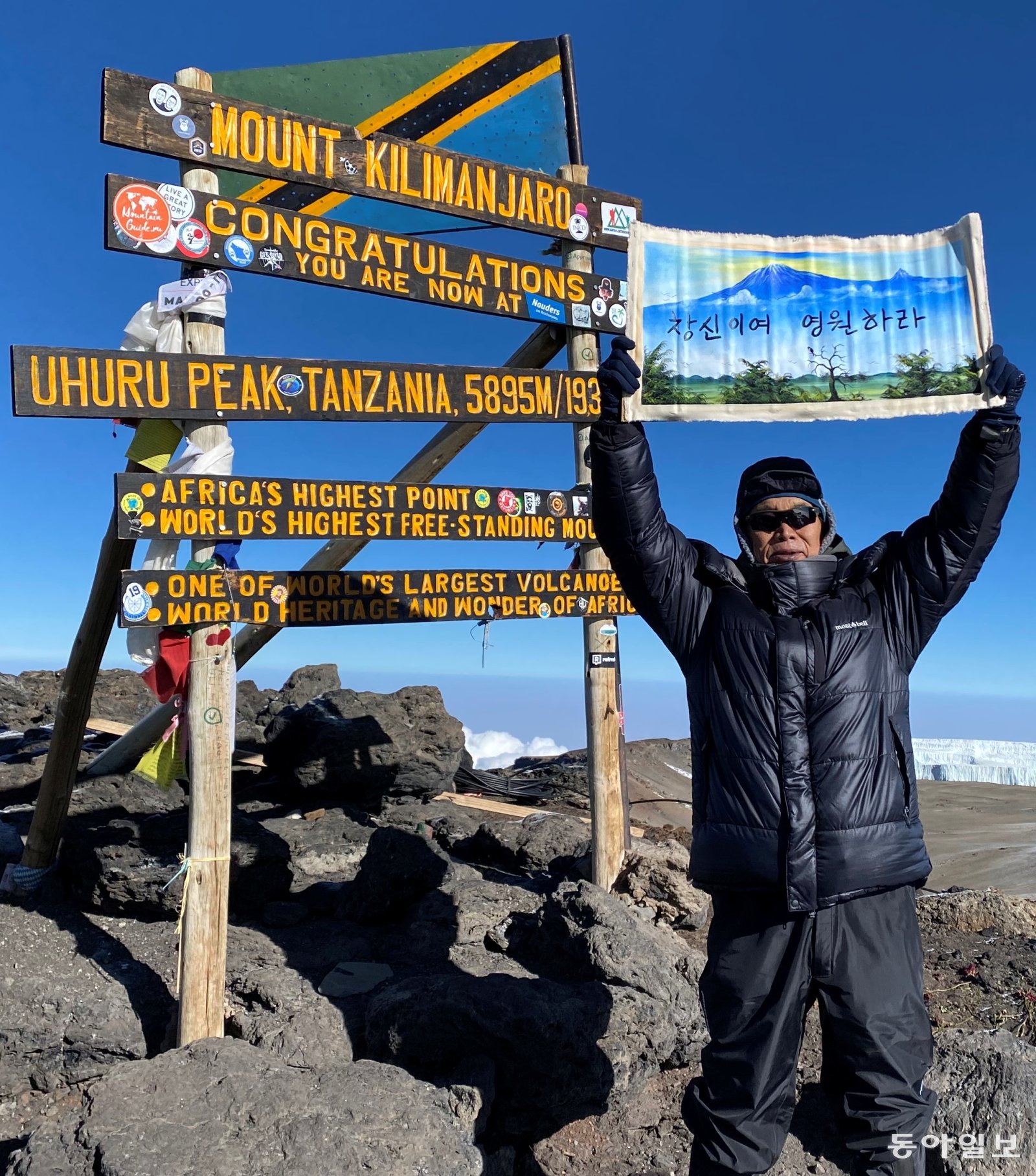 정환일 회장이 탄자니아 킬리만자로에 올라 포즈를 취했다. 정환일 회장 제공정 회장 체중은 70~71kg. 대학 시절 72kg과 비슷하다. 그만큼 철저하게 관리하고 있다.