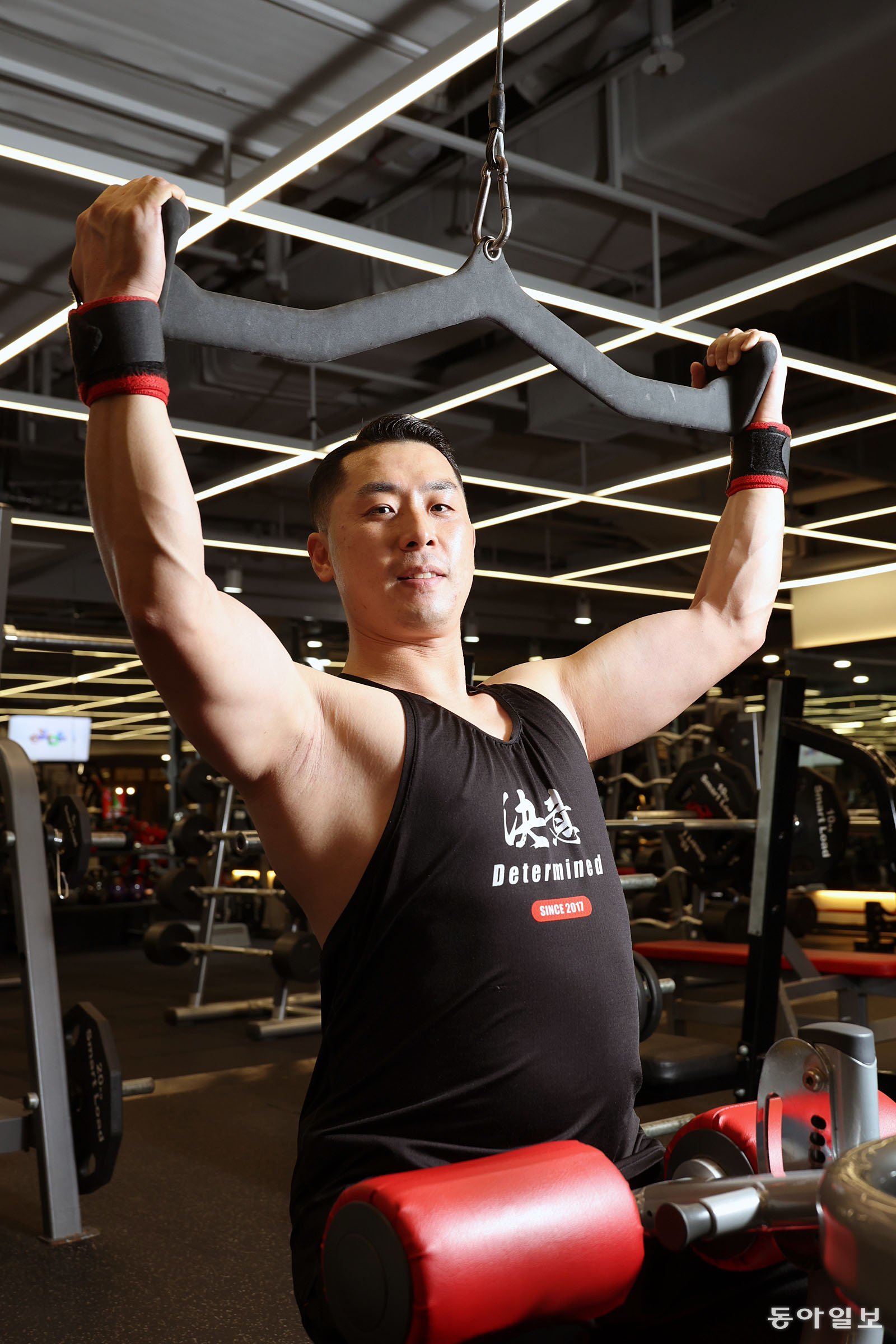 김강민 대장이 서울 중구 피트니스101에서 웨이트트레이닝을 하고 있다. 전영한 기자 scoopjyh@donga.com