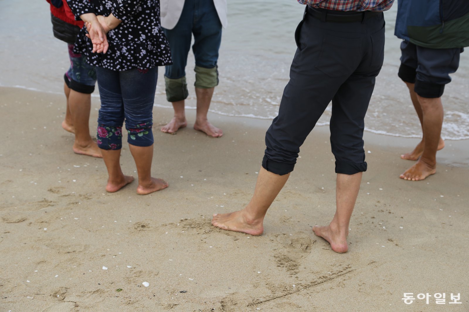 유제성 원장(오른쪽)과 문정희 대표가 인천 중구 무의도 하나개해수욕장에서 맨발 걷기를 하고 있다. 유제성 원장 제공.유 원장은 “신발 신고 밖으로 나가 걸으면 되는 걷기는 돈 안 드는 최고의 운동”이라며 “그 효과도 대단하다”고 강조했다.