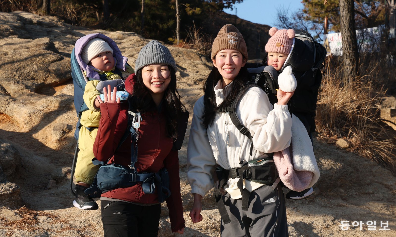 1월 8일 오후 서울 광진구 아차산 기원정사. 오언주 베이비하이킹클럽(베하클) 회장(36)과 베하클 운영을 함께하는 김지영 씨(29)는 각각 아들(인주호·1년 10개월)과 딸(강다경·1년 8개월)을 업고 아차산 해맞이코스를 올랐다. 섭씨 영하의 날씨였지만 아랑곳하지 않았다. 간식 및 방한 도구를 넣은 캐리어에 아이 몸무게까지 17kg이 넘었다. 군대 단독군장보다 무거웠지만 아차산 1보루까지 20분 넘게 걸리는 코스를 쉬지 않고 단번에 올랐다. 둘은 입을 모았다.