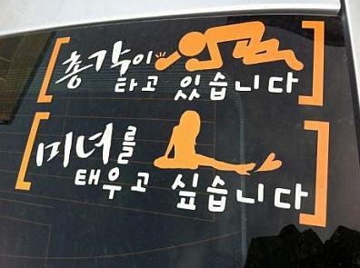 공개된 사진은 차량 윈도우에 붙은 시트를 찍은 것으로 ‘총각이 타고 있습니다’, ‘미녀를 태우고 싶습니다’라는 문구가 각각 좌절하는 사람과 미녀의 실루엣을 함께 곁들여 솔로의 심정을 드러냈다. 특히 ‘미녀를 태우고 싶습니다’는 문구는 옆 좌석에 미녀를 태우고 싶어 하는 남성들의 공감을 자아냈다.