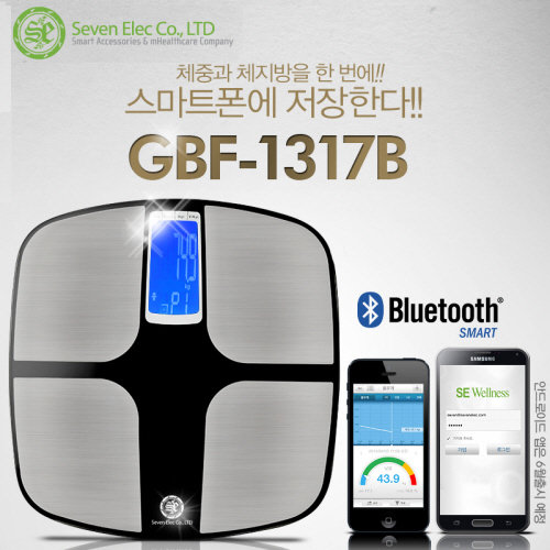 스마트기기 전문기업 ㈜세븐일렉(대표이사 손종문)은 지난 2월 블루투스 스마트 기술을 적용한 체지방측정기(모델명GBF-1317B)로 식품의약품안전처 허가를 받고, 5월 15일 출시한다고 밝혔다.