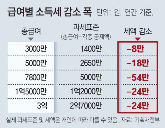 연봉 1억 안팎 근로자, 年 83만원 소득세 감면 ‘최대 수혜’