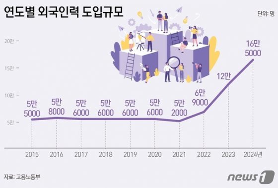 내년도 외국인력(E-9) 도입규모는 16만5000명으로, 이는 올해(12만명)대비 37.5%가 증가한 역대 최대 규모다.