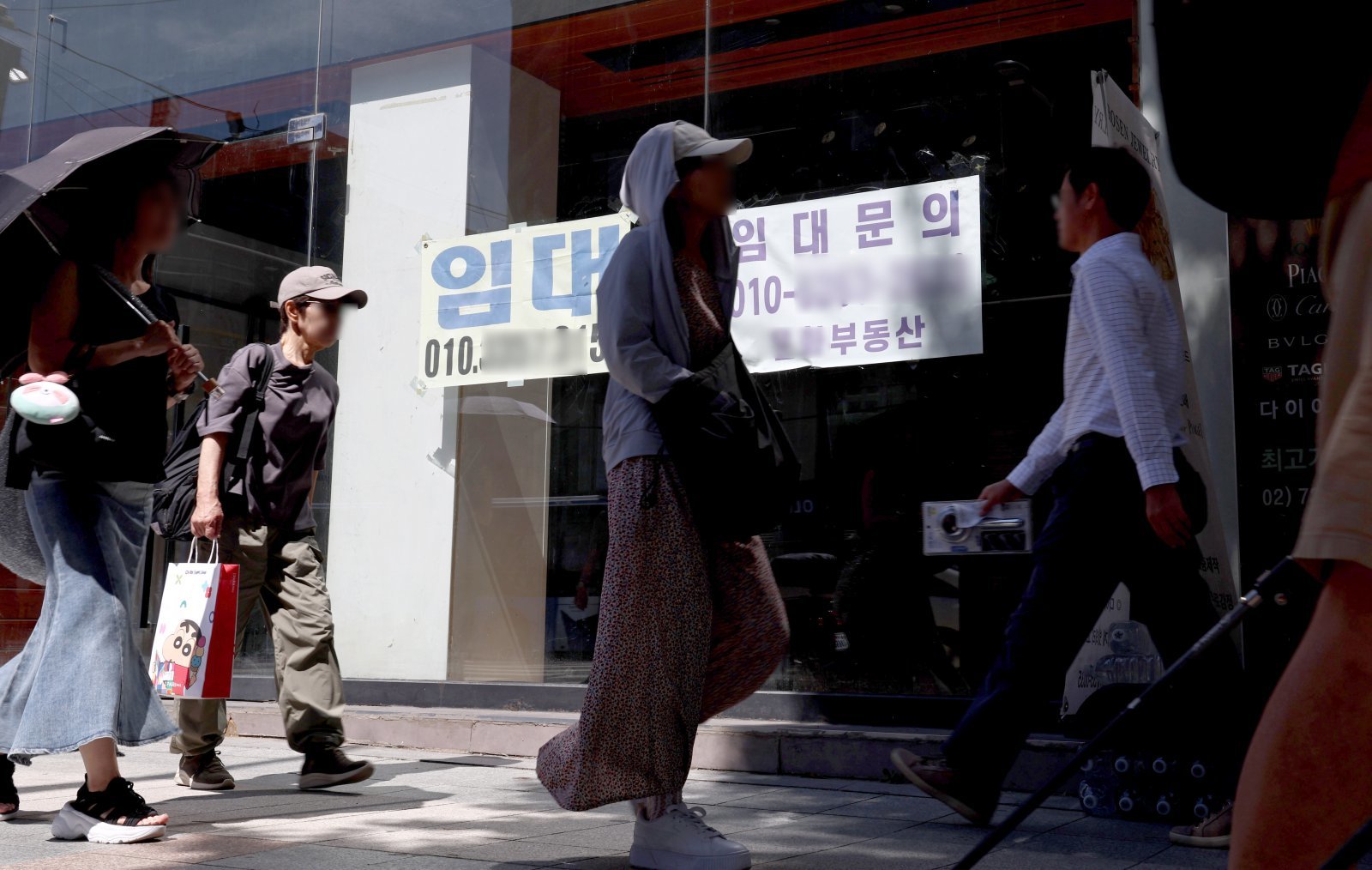 지난해 폐업한 자영업자가 100만 명을 넘어서며 역대 최대치를 기록한 가운데, 11일 서울 도심 상가 건물에 임대 현수막이 내걸려 있다.. 2025.9.11/뉴스1