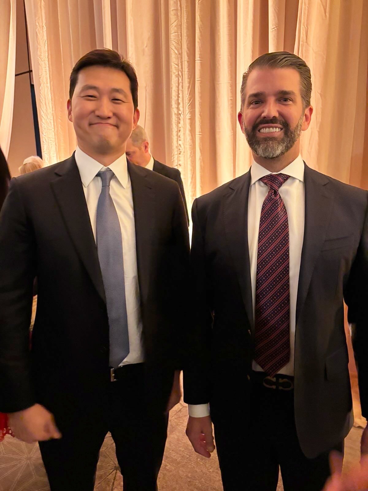 김범석 쿠팡 의장이 2025년 1월 17일(현지시간) 미국 콘랜드 워싱턴DC 호텔에서 도널드 트럼프 미국 대통령 당선인의 장남인 트럼프 주니어와 만나 대화 후 기념 사진을 촬영하고 있다. ⓒ News1밀러 의원은 또 한국 국회가 미국 기업을 겨냥한 “검열 법안(censorship bill)”을 통과시키는 등 규제 입법을 추진하고 있다며 “최근 두 미국인 경영진을 대상으로 정치적 마녀사냥(political witch hunt)을 시작했다”고 주장했다. ‘검열 법안’은 최근 더불어민주당 주도로 국회를 통과한 정보통신망법 개정안을, ‘정치적 마녀사냥’은 해롤드 로저스 쿠팡 한국 임시 대표와 김범석 쿠팡Inc 의장에 대한 수사를 염두에 둔 발언으로 풀이된다.