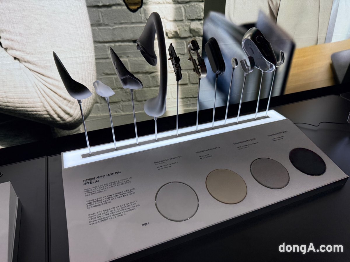 새롭게 개발한 실리콘 소재와 니켈-티타늄 합금을 사용해 착용감을 높였다고 한다. 실제로도 귀 위에서 고정된 느낌이 확실히 들었으며, 고개를 좌우로 세게 흔들어도 떨어지지 않았다.