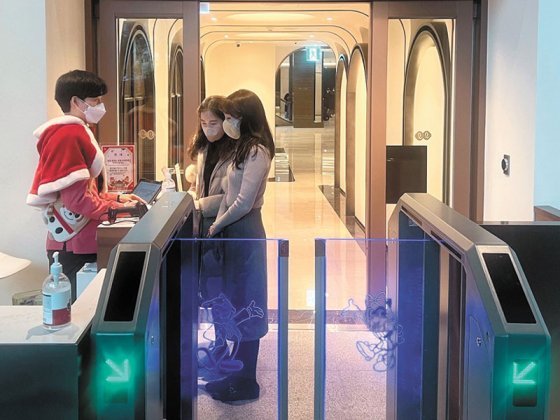 롯데호텔 월드와 롯데월드를 곧장 이어주는 ‘원더 도어’. 롯데호텔 제공 원더 도어는 롯데호텔 월드와 롯데월드를 이어주는 통로. 그간 호텔에서 롯데월드로 가려면 외부로 나가 10분 이상 걸어가야 했다. 하지만 원더 도어를 이용하면 몇 걸음만 걸어도 바로 입장할 수 있다. 호텔 패키지나 호텔 현장 구매를 통해 제공되는 전용 티켓을 이용하는 투숙객에겐 ‘원더 찬스’ 특전도 선사한다. 투숙객이 롯데월드를 이용할 때 재입장이 1회 허용되는 특전이다.