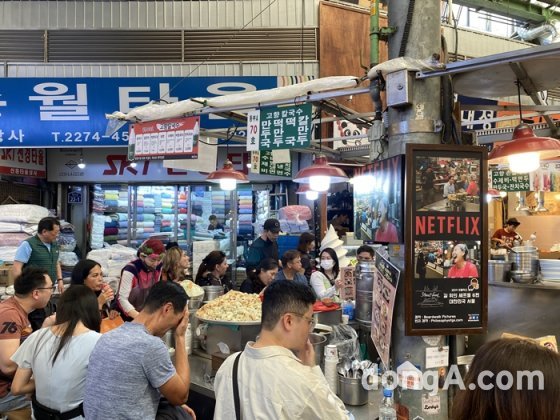 지난 2019년 4월 넷플릭스 오리지널 다큐멘터리 시리즈 ‘길 위의 셰프들: 아시아’ 서울편에서 한 음식 전문 기자는 광장시장을 이와 같이 표현했다. 해당 방송은 광장시장을 외국인 필수 관광지 중 하나로 올려놓았다.