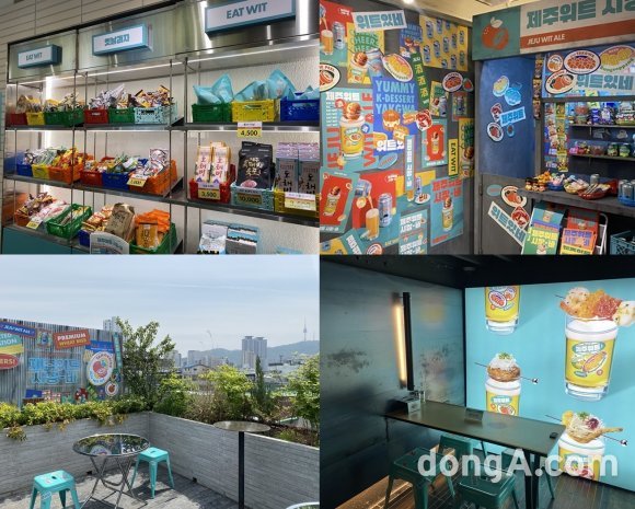 이밖에도 포토존과 굿즈 뽑기 이벤트 등 프로그램도 체험할 수 있다. 윗층으로 올라가면 제주 위트 에일과 함께 페어링 음식을 즐길 수 있는 루프탑이 나온다. 사진=윤우열 동아닷컴 기자 cloudancer@donga.com이번 팝업 매장은 ‘길 위의 셰프들’에서도 소개된 ‘박가네 빈대떡’을 운영하는 321플랫폼의 365일장, 히든아워, 남일문 공간에 마련됐다. 1층에서는 다양한 제주맥주 굿즈를 만날 수 있으며, 테마에 걸맞게 옛날과자와 제주 특산물을 활용한 간식들도 준비됐다. 이밖에도 포토존과 굿즈 뽑기 이벤트 등 프로그램도 체험할 수 있다.