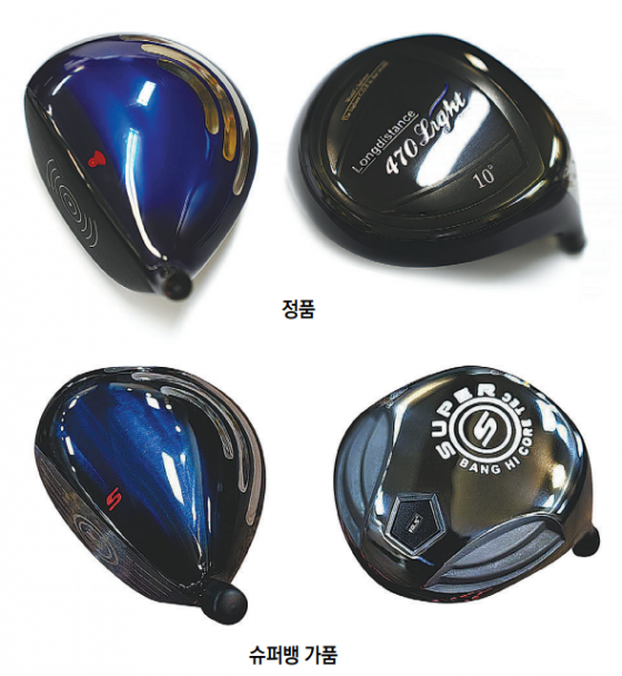 왼쪽 두 제품은 가품이고, 오른쪽 제품만이 진품이다.H 씨가 운영하는 T골프는 성남 분당구 운중로에 맞춤 골프 간판을 걸어 놓고 가짜 헤드를 중국에서 들여와 네이버 등 포털 사이트 키워드 광고 등을 통해 뱅 드라이버라고 선전하고 네이버 쇼핑몰, 쿠팡 쇼핑몰 및 자신의 T골프 홈페이지와 전국의 피팅숍 인터넷 쇼핑몰과 매장에서 판매한 혐의다. 이 과정에서 T골프와 피팅숍의 제조 시설을 이용해 가짜 제품을 만들었다.