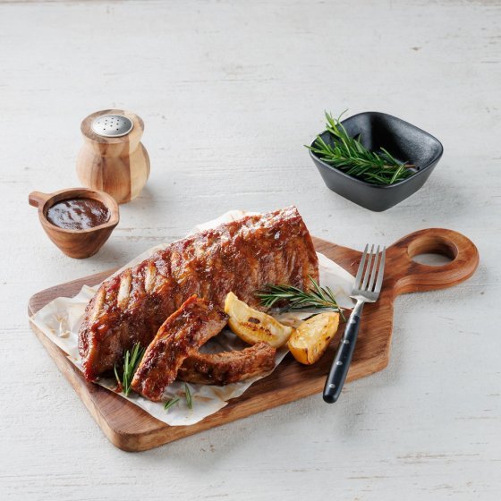 조선호텔앤리조트가 선보인 ‘조선호텔 바베큐 폭립’은 두툼한 살코기가 붙어 있는 돼지 등갈비 부위로 만들어졌습니다. 마늘, 생강 등 재료를 넣고 하루 동안 재운 뒤 특제 양념 소스를 발라 부드러우면서도 쫄깃한 육질이 특징. 야외에서 조리할 땐 그릴에 구워 불향까지 더해 더욱 근사하게 즐길 수 있습니다.