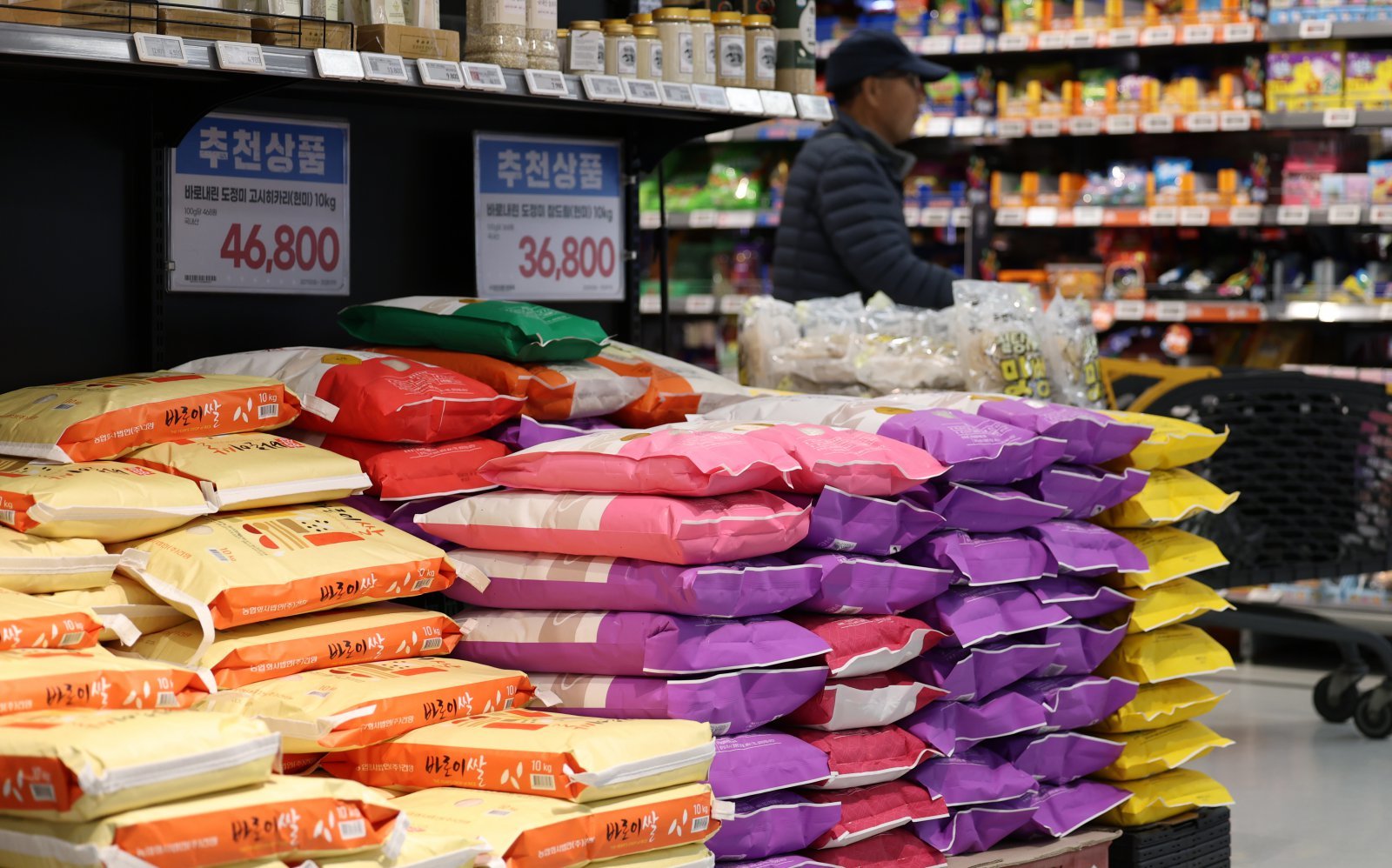 10월 소비자물가 상승률이 2.4%를 기록하며 전월(2.1%)보다 상승 폭이 확대됐다. 지난해 7월 이후 15개월 만에 최대 상승률이다. 국가데이터처가 4일 발표한 ‘2025년 10월 소비자물가동향’에 따르면 지난달 소비자물가지수는 117.42(2020년 = 100)로 전년 동월 대비 2.4% 상승했다. 축산물(5.3%), 수산물(5.9%)이 크게 올랐고, 특히 쌀(21.3%), 돼지고기(6.1%), 고등어(11.0%) 등의 상승세가 두드러졌다. 사진은 이날 오후 서울의 한 대형마트에서 장을 보는 고객들. 2025.11.4/뉴스1지난달 소비자물가가 15개월 만에 가장 큰 폭으로 올랐다. 이례적인 가을 장마로 일부 농산물 가격이 급등한 데다 길었던 추석 연휴로 여행·숙박 수요가 늘어난 영향이다.