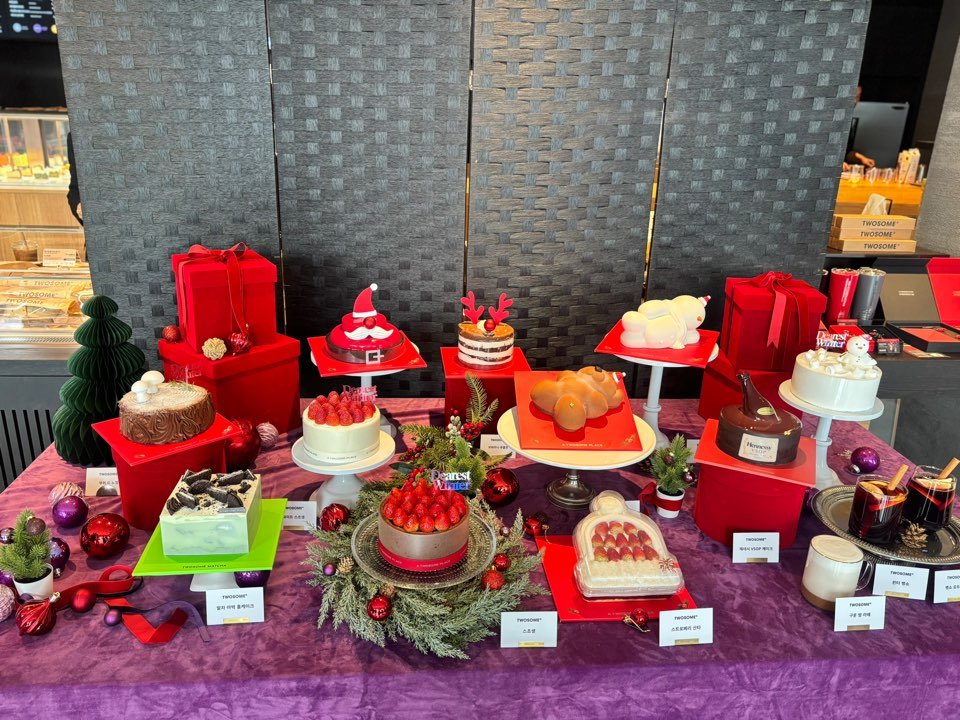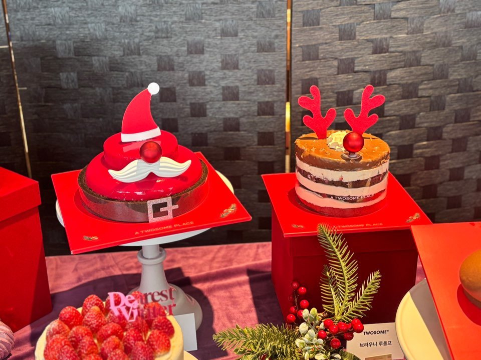 2025년 홀리데이시즌 케이크. 황소영 기자 fangso@donga.com투썸플레이스(이하 투썸)가 6일 서울 종로구 안국동에서 ‘2025 홀리데이 시즌 기자간담회’를 열고 겨울 시즌 신제품과 브랜드 전략을 공개했다. 이번 행사는 정식 오픈을 앞둔 차세대 프리미엄 매장 ‘투썸 2.0 안국’에서 진행됐다.