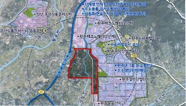 완주 수소특화 국가첨단산업단지. 사진=전북도또한 2030년까지 완주군 봉동읍 일원에 165만㎡(50만평)규모의 수소특화 국가첨단산업단지가 조성될 계획으로, 이 곳에서만 일자리 2만여 개 이상이 창출될 것으로 기대를 모으고 있다.