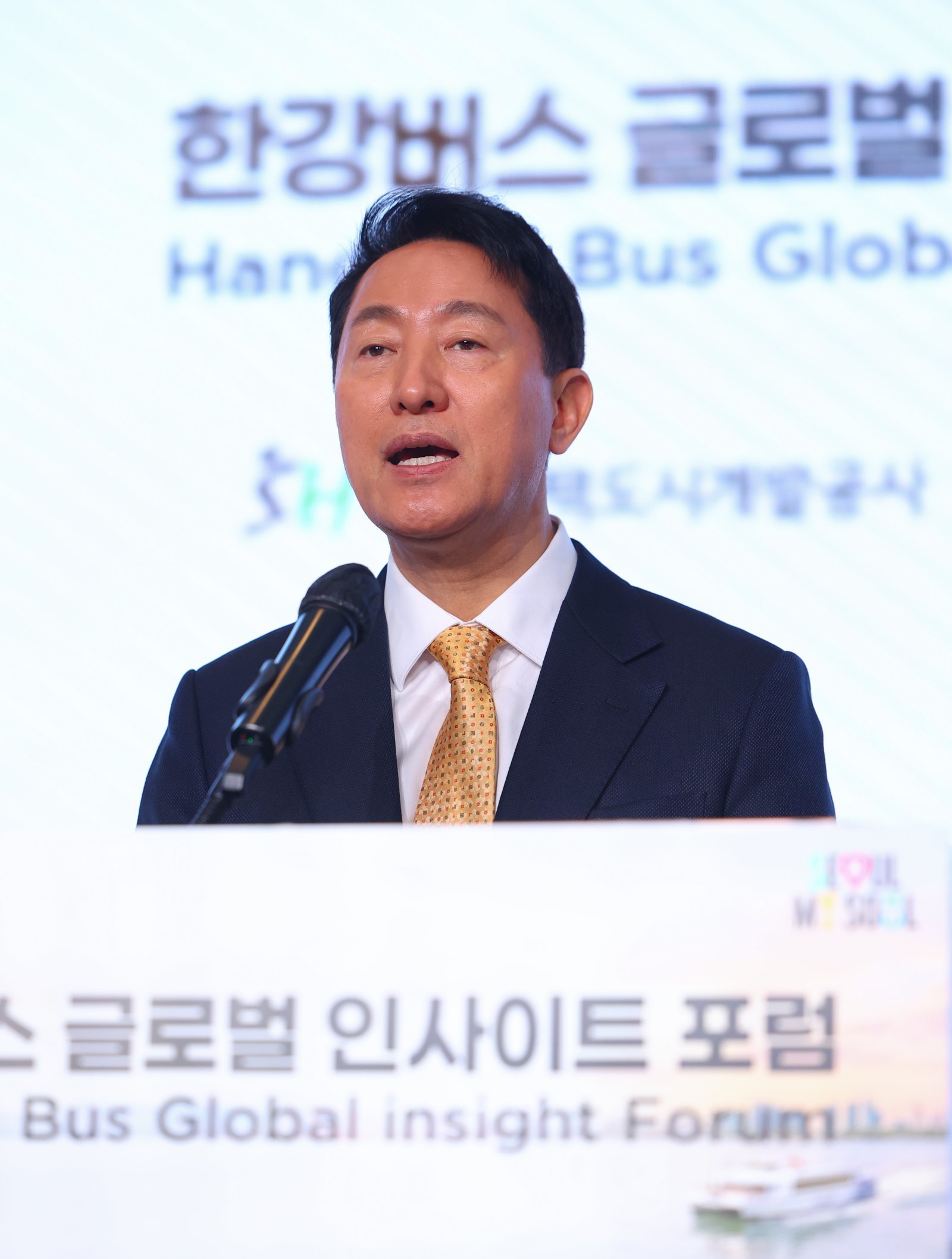 오세훈 서울시장이 24일 오전 서울 마포구 호텔나루 서울 엠갤러리에서 열린 한강버스 글로벌 인사이트 포럼에서 인사말을 하고 있다. 2026.02.24 뉴시스