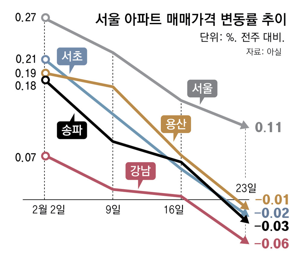 “다주택 매물 쌓여 8억 낮추기도, 강남권 집값 하락 4월까지 갈듯”