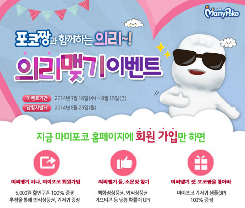 해당 이벤트에 대한 자세한 사항은 마미포코 공식홈페이지(www.mamypoko.co.kr)에서 확인 할 수 있다.