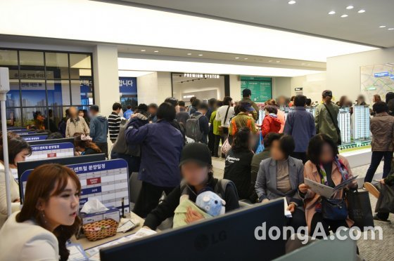 광주 그랜드센트럴 입장을 위해 줄을 서고 있다. 광주 그랜드센트럴은 호반건설과 중흥건설이 컨소시엄으로 계림8구역을 재개발해 공급하는 현장으로 광주광역시 동구 계림동 493번지 일원에 들어선다. 지하 2~지상 34층, 19개 동, 총 2336가구 대단지이며, 일반 분양은 1739가구다.