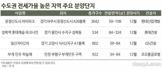 이런 가운데 연내 전세가율이 높은 경기도 파주와 용인, 인천 부평구 등 수도권 분양시장에 새 아파트가 공급을 앞두고 있다.