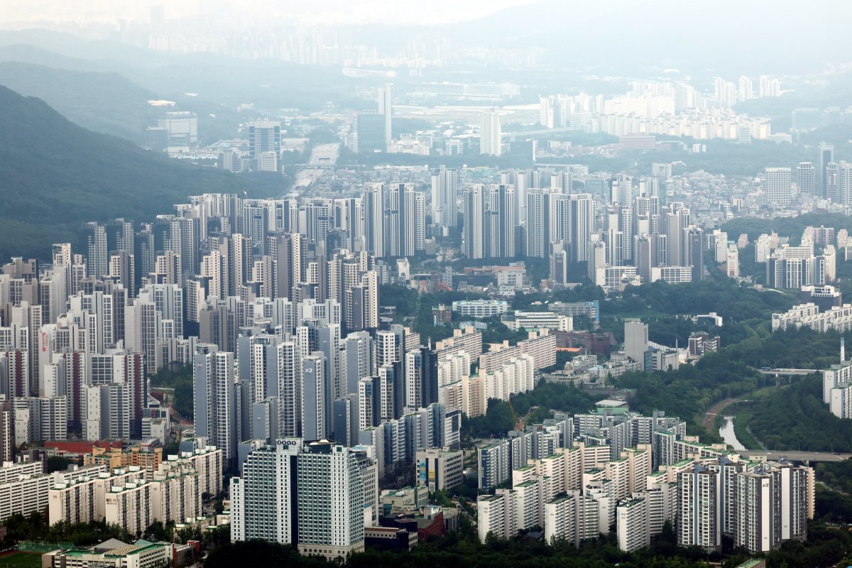 정부가 수도권과 규제지역의 주택담보대출 한도를 6억원으로 제한하는 초강수 조치를 펴면서 서울 아파트의 74%가 주담대 제한 영향권에 들게 된다는 분석이 나왔다. 부동산R114의 수도권 아파트 평균 시세를 보면 서울 전체 25개 구 가운데 18개 구의 대출액이 종전보다 줄어들 것으로 예상했다. 사진은 29일 서울 송파구 롯데월드타워 전망대 서울스카이에서 바라본 서울시내 아파트의 모습. 2025.06.29. 서울=뉴시스