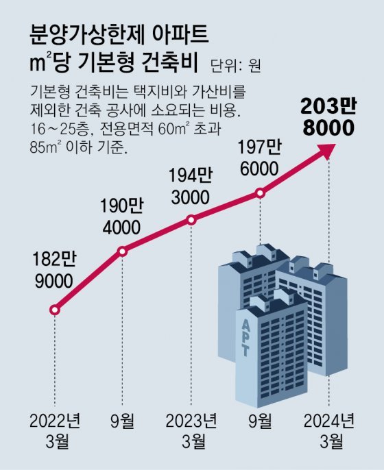 사업비 증가는 분양가 상승으로 이어질 가능성이 크다. 올해 사업비가 증가한 7개 지구는 7월부터 본청약을 진행한다. 본청약 때는 실제 사업비와 주변 시세를 반영해 사전청약 때의 ‘추정 분양가’와 달라질 수 있다. 올해 3월 발표한 ㎡당 분양가상한제 주택의 기본형 건축비(16∼25층, 전용 60㎡ 초과 85㎡ 이하)는 203만8000원으로 2022년 3월(182만9000원) 대비 11.4% 오른 상태다.