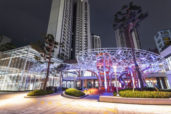 대치 푸르지오 써밋에 조성된 아티스틱 플레이그라운드는 아이들의 창의성과 상상력을 자극하는 놀이 공간이다. 대우건설은 기존 놀이 기구 중심의 놀이터에서 탈피해 원형 패턴 위에 3D펜으로 그려낸 듯한 자유로운 형태의 놀이기구를 도입했다. 입체적이고 현대적인 디자인의 대지 예술로 어른들과 아이들이 함께 즐기고 소통하는 장소로 자리잡았다.