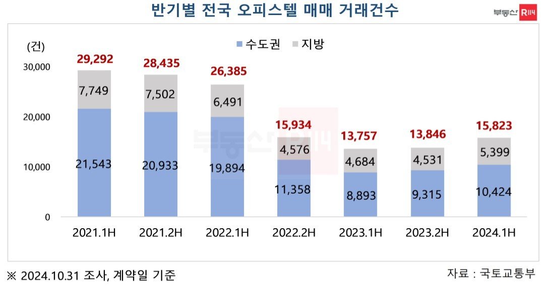 2022년 하반기부터 심화된 집값 하락과 역전세, 전세사기 우려 확산으로 비아파트 시장이 직격탄을 맞았다. 이러한 여파로 2023년 상반기 전국 오피스텔 거래량은 작년 동기 대비 절반 수준(2만 6385건→1만 3757건)으로 급감했다.