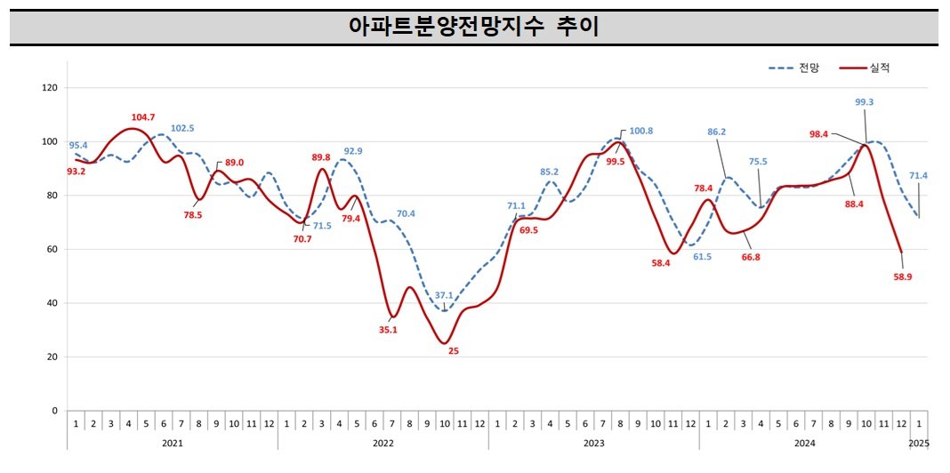 새해 첫 달 아파트 분양전망 대폭 악화…전월比 10.6p 하락