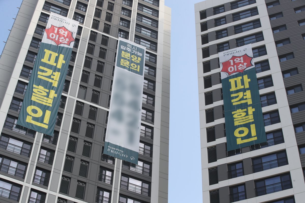 지방 소재 아파트에 할인분양 현수막이 걸려있다. 뉴스1