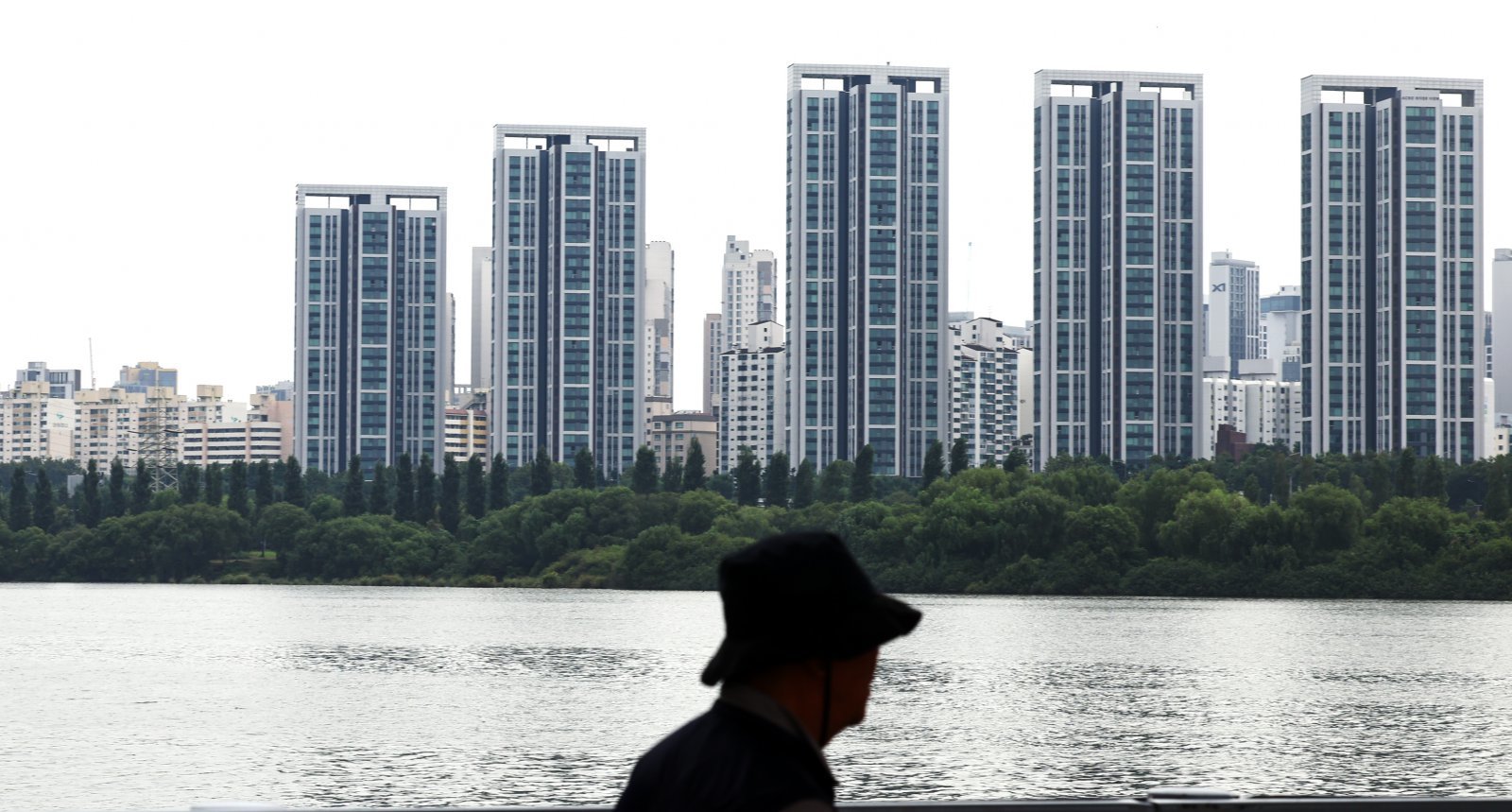 6·27대책 시행 두 달 째인 지난 8월 수도권 아파트 매매 거래량이 대출 규제 이전의 절반 수준으로 급감한 것으로 나타났다. 서울의 경우 거래량 감소에도 상승 거래 비중이 절반을 웃돈 것으로 나타났다. 직방에 따르면, 국토교통부 아파트 매매 실거래가를 분석한 결과 수도권은 6월 3만1132건에서 7월 1만4331건, 8월 1만2982건으로 절반 이하로 줄었고, 서울의 상승거래 비중은 6월 58%에서 8월 53%, 같은 기간 평균 거래가격 변동폭은 1.89%에서 1.26%로 나타났다. 사진은 16일 서울 잠수교에서 바라본 아파트 단지의 모습. [서울=뉴시스]한국은행이 정부의 6·27 대책에 따른 서울 아파트 가격 상승폭 둔화 정도에 대해 과거 문재인·윤석열 대통령 당시 주택시장 대책 발표 당시 효과보다 제한적이라는 분석을 내놨다.