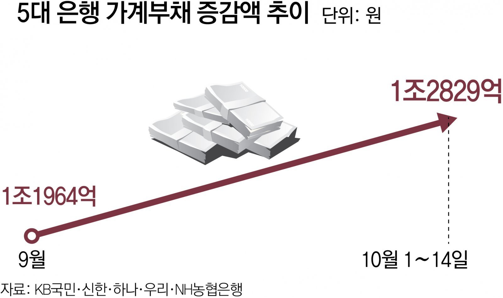 추석 전후 ‘5대은행 가계부채’ 급증… 4일만에 1조2829억↑, 9월분 넘어